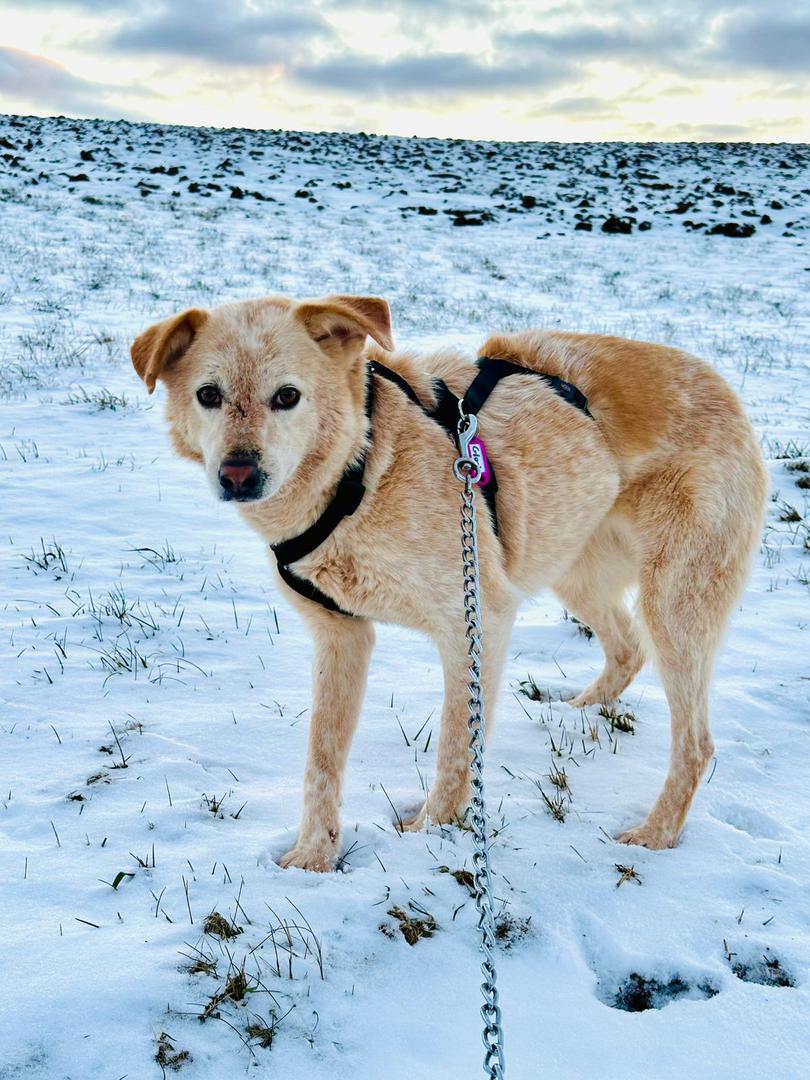 Sie ist eine sanfte Hündin, nie aufdringlich oder laut, sie versucht, alles richtig zu machen, ist aber in manchen Situationen noch ein bisschen unsicher, wenn sie etwas Schwieriges geschafft hat wie die für sie ganz neue Erfahrung des Laufens an der Leine, ist sie sehr dankbar für Lob und ist richtig stolz auf das Geschaffte.